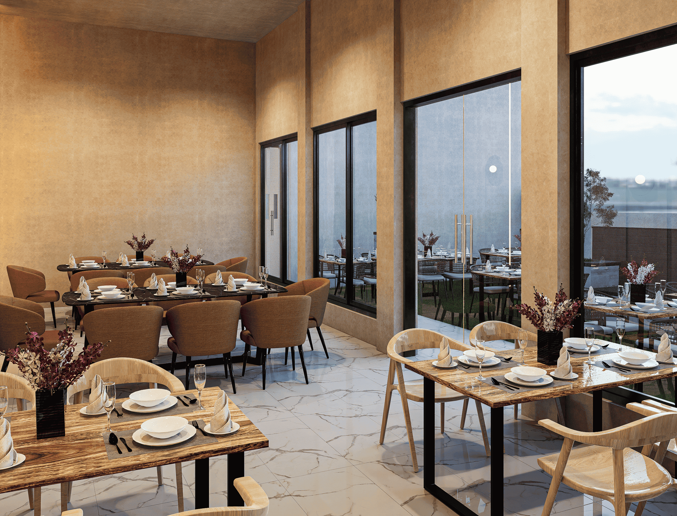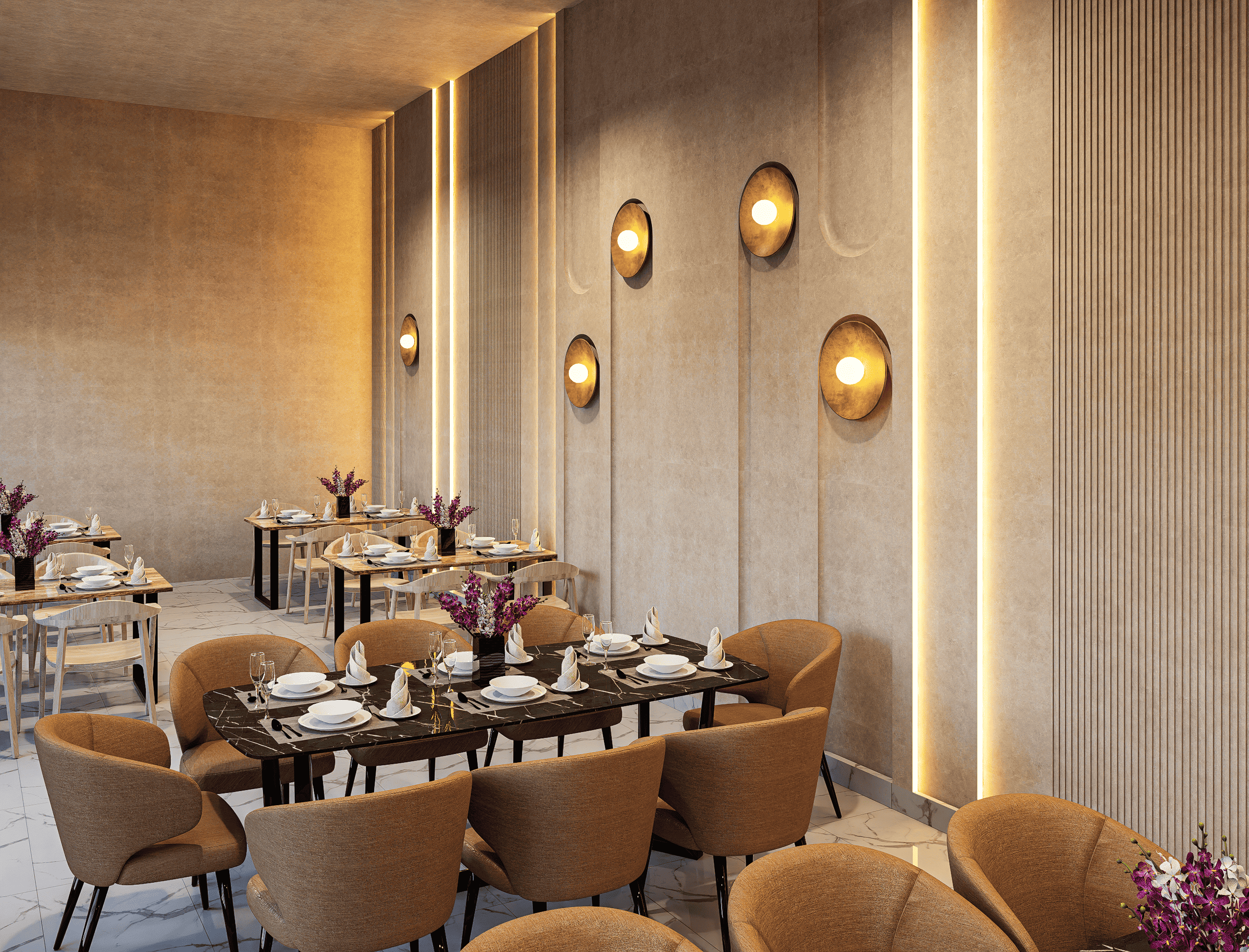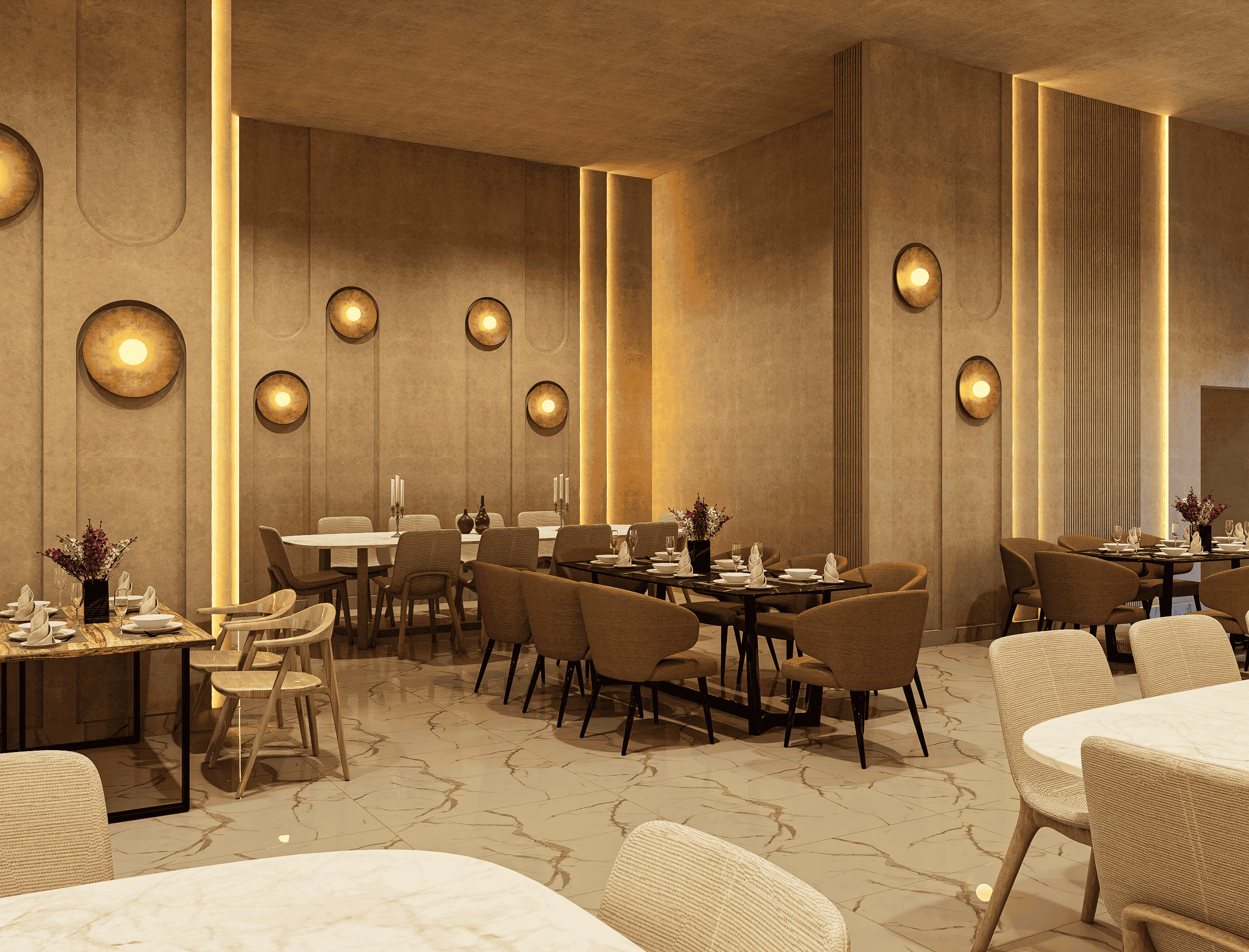 This project was designed for a client in Gulberg, Lahore, Pakistan. It is a modern restaurant that blends contemporary aesthetics with functional spatial planning. The design focuses on creating an inviting atmosphere through natural materials, ambient lighting, and a seamless connection between indoor and outdoor seating areas. Thoughtful circulation, zoning, and façade articulation contribute to both the operational efficiency and visual identity of the space.