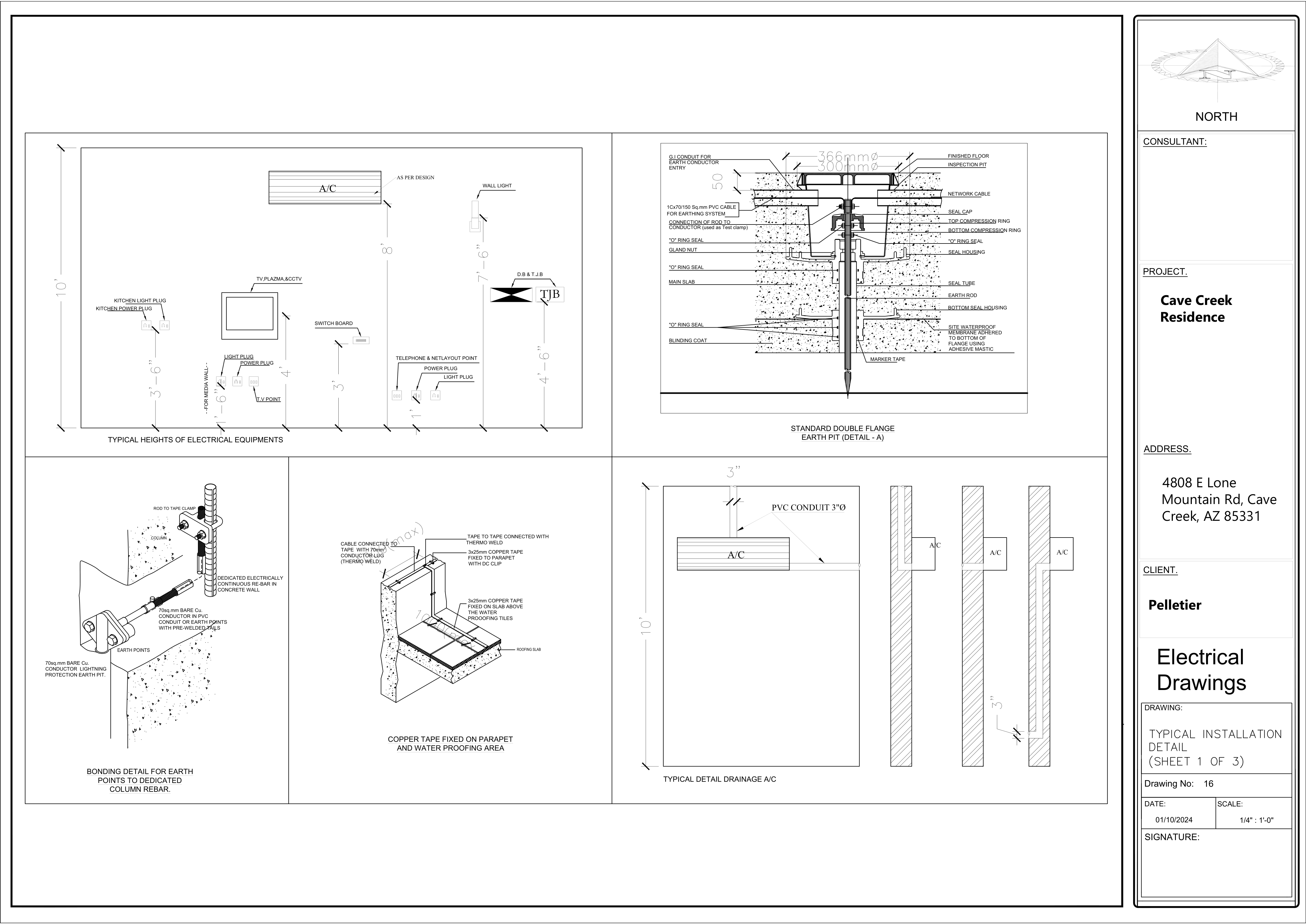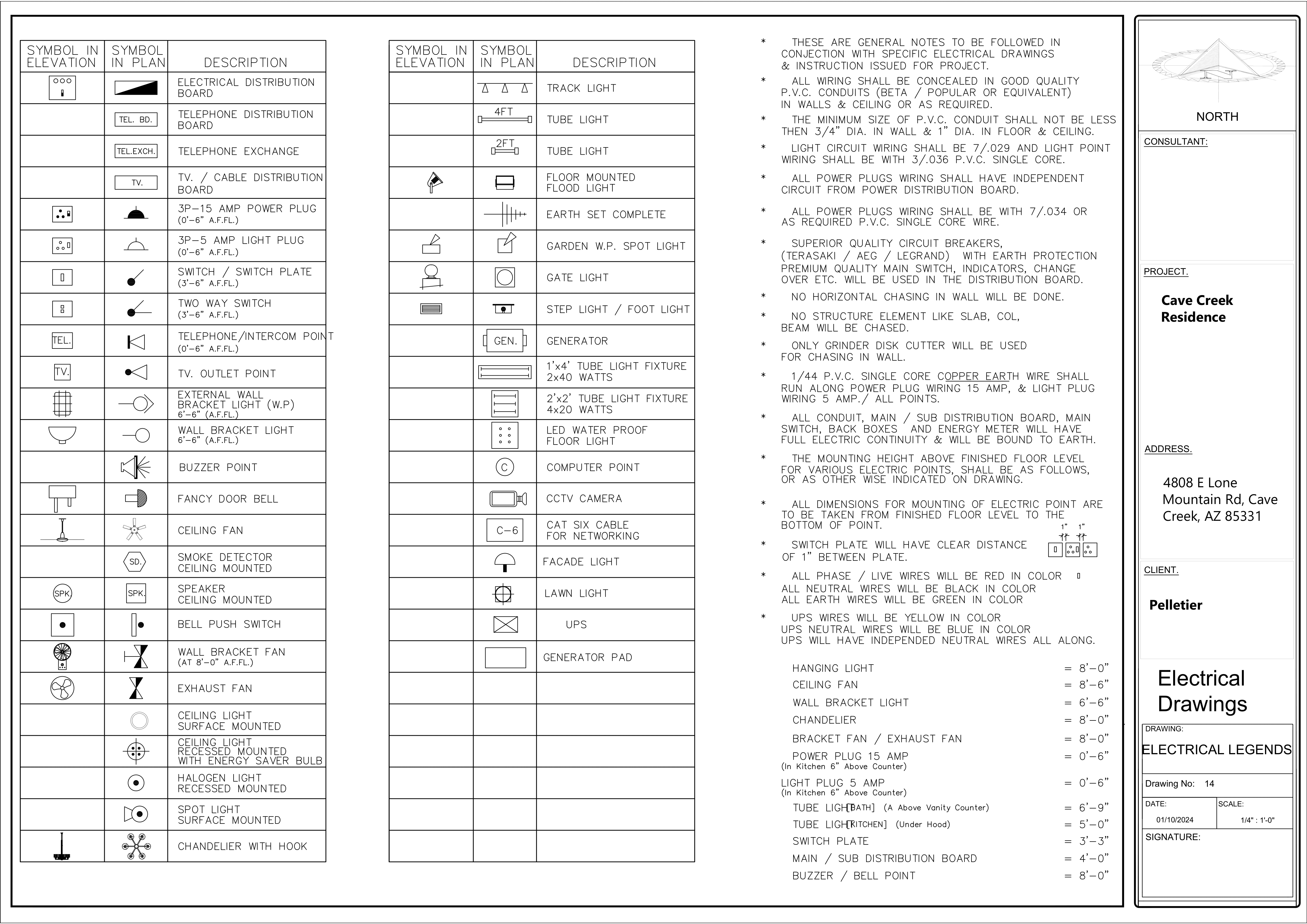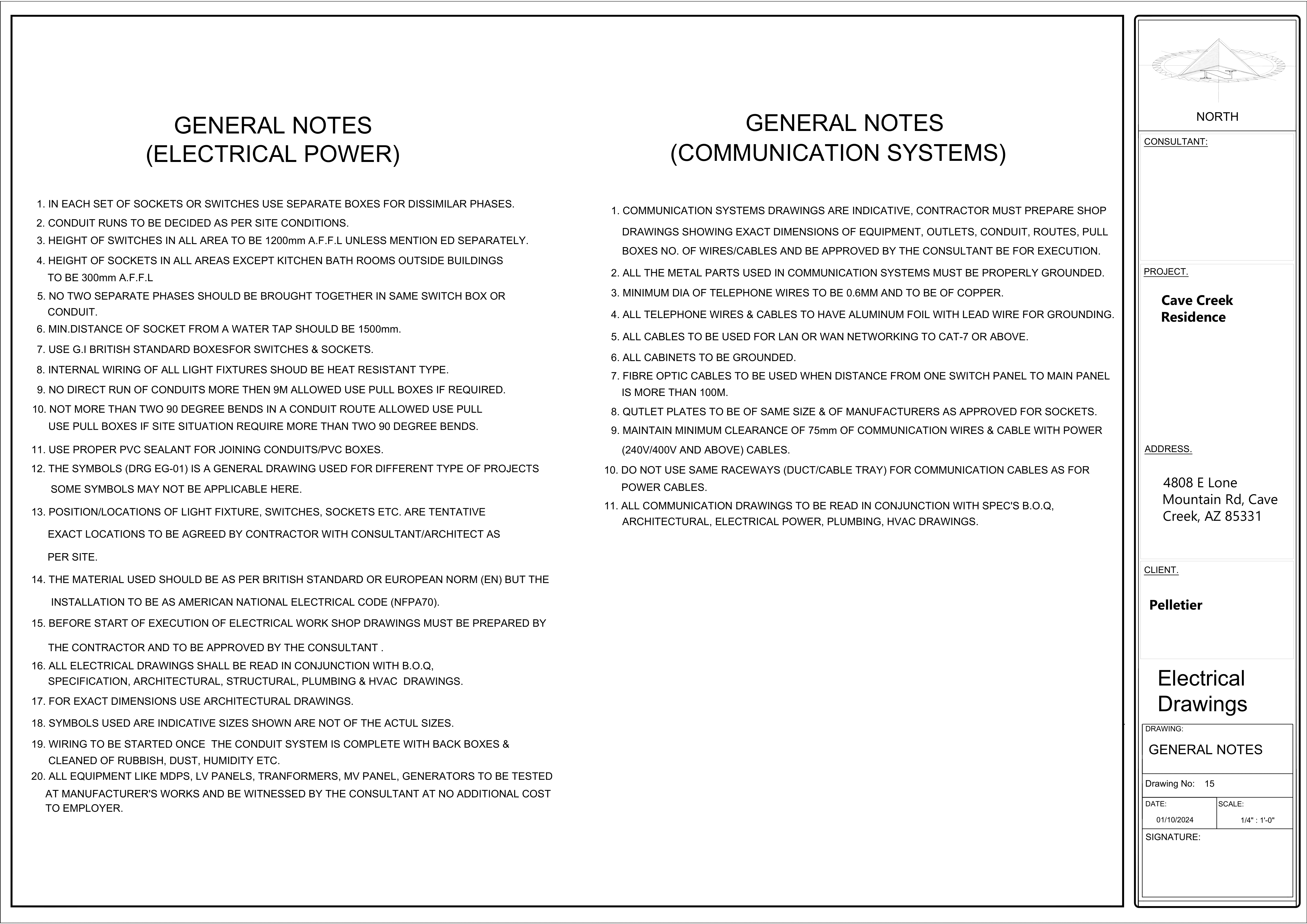 This project was developed for the Pelletier family in Cave Creek, focusing on detailed architectural drawings for a residential home. The design emphasizes harmony with the natural desert landscape while offering modern comforts and spacious living. Every detail—from layout to structural articulation—was thoughtfully planned to ensure both functionality and elegance, creating a refined living experience in this serene location.